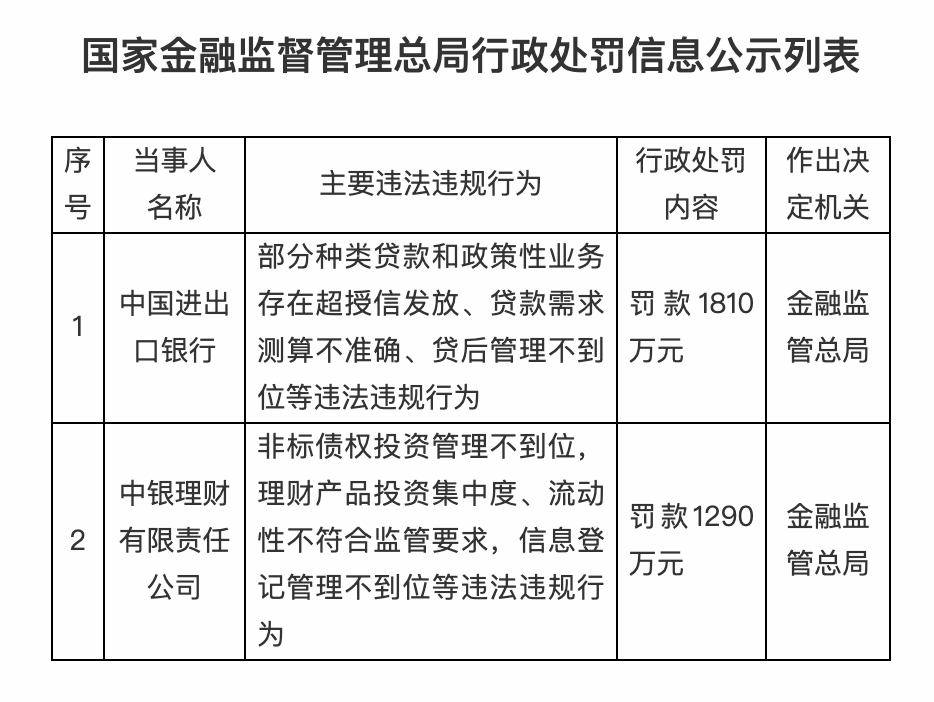 中银理财临时信息披露公告显示,罚单主要针对的是公司2023年理财业务现场检查中发现的问题。