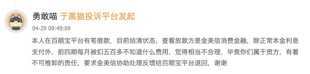 当消费者因会员费纠纷找到百顺宝平台时,对方直接宣称是“资方收款”,建议消费者投诉资方金美信消金。在消费者看来,金美信消金作为资方也负有协助退款的责任。