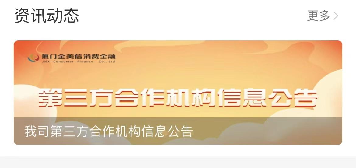 5月底,厦门金美信消费金融公司(简称“金美信消金”)在官方App中披露了第三方合作机构信息。其中包含深圳信合元科技有限公司(简称“信合元科技”),合作起止日期为2023年4月到2026年4月,此后该名单多次更新,记者注意到,期间信合元科技均未出现在名单中,疑似被移出。不过,8月12日金美信消金更新了第三方合作机构信息,信合元科技又回归到名单中。