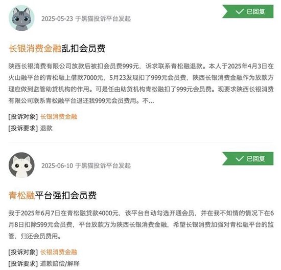 近日,有消费者反映称,于2025年6月7日在“青松融”平台贷款4000元,放款方为陕西长银消费金融,次日该消费者又被扣取了599元会员费用。该消费者表示是平台自动勾选会员,自己并不知情,要求退费的同时希望长银消费作为放款方加强对助贷机构“青松融”的监管。