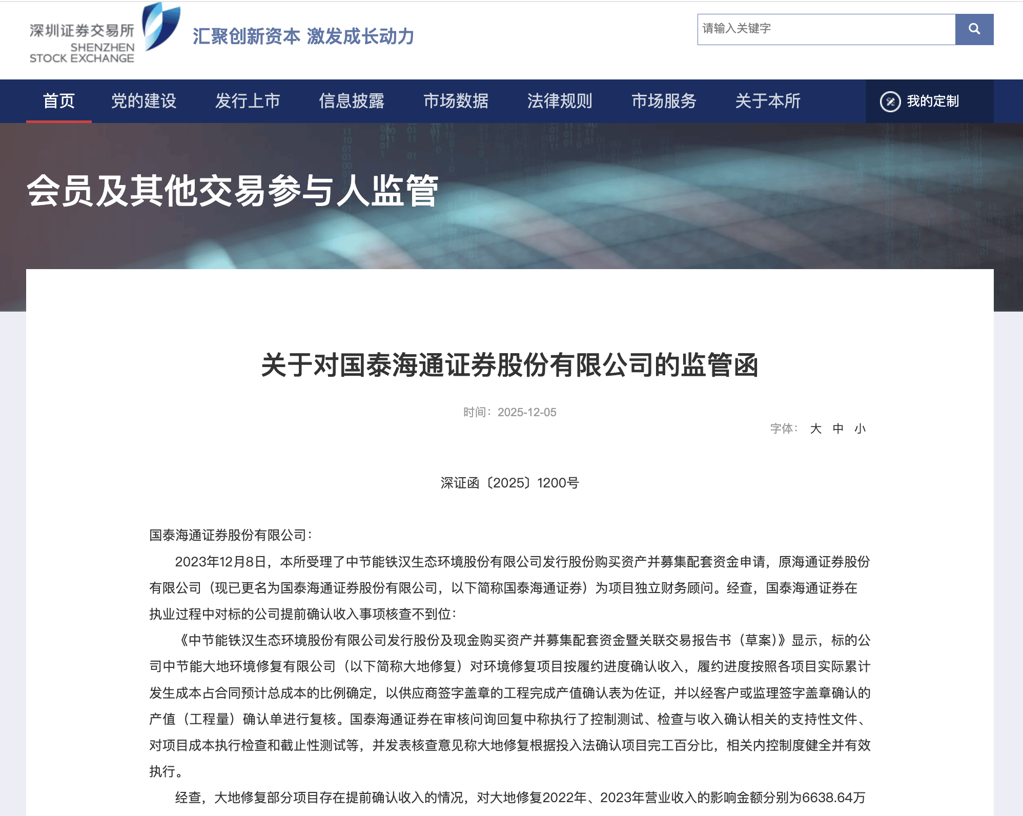 深交所对国泰海通的监管函