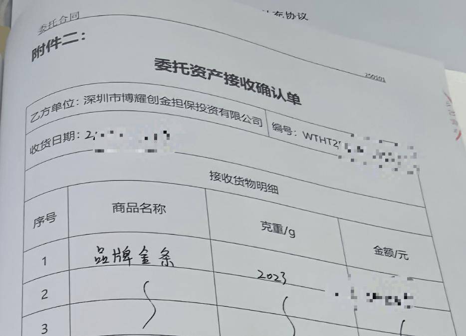 根据陈涛提供的一份合同,流程分为两步。投资者首先与深圳市金雅福首饰有限公司签订《黄金实物买卖合同》,确立基础买卖关系但不提取实物。随后,再与深圳市博耀创金担保投资有限公司(下称“博耀创金”)签订《委托合同》,委托其将对应黄金资产用于“文化金渠道销售”等业务,而合同中明确的合作方正是深圳市金雅福黄金珠宝发展中心有限公司。