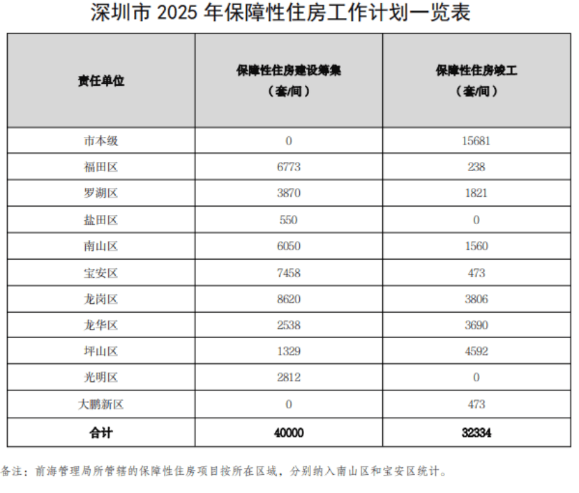 2025年,深圳计划新安排建设筹集保障性住房4万套(间),计划竣工保障性住房3.23万套(间)。