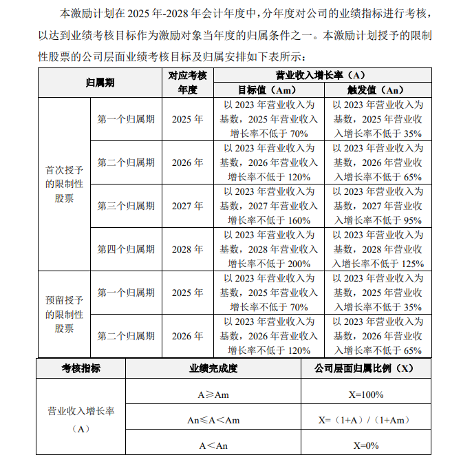 (4)2025年激励计划拟授予133名励对象111.279万股限制性股票,授予价格为55.49元/股。公司层面的业绩考核要求如下图所示: