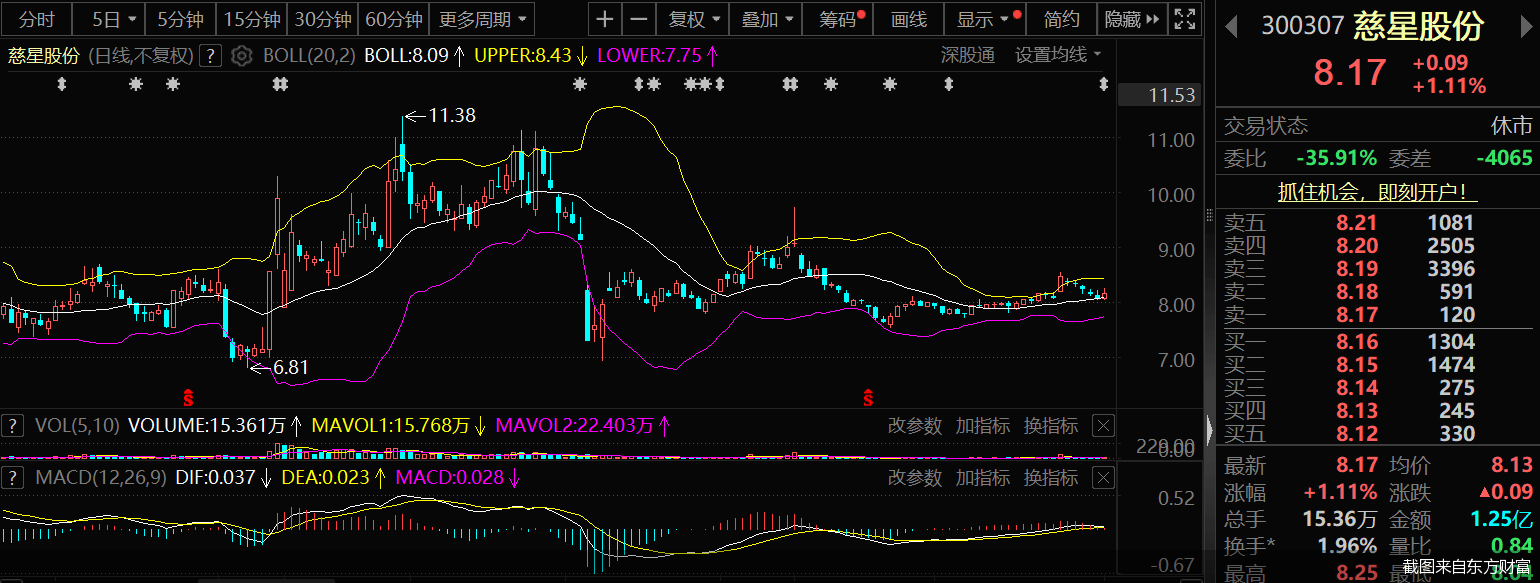 8月4日,慈星股份股价将如何表现也引发市场关注。截至8月1日收盘,慈星股份股价报8.17元/股,总市值约为64.89亿元。