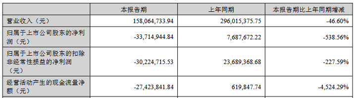 2025年1-6月,公司实现营业收入1.58亿元,同比下降46.60%;归属于上市公司股东的净利润为-3,371.49万元,上年同期为768.77万元;归属于上市公司股东的扣除非经常性损益的净利润为-3,022.47万元,上年同期为2,368.94万元;经营活动产生的现金流量净额为-2,742.38万元,上年同期为61.98万元。