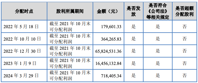 根据招股书,2021年11月1日,双祺有限召开股东会,经与会股东一致同意,向股东商积童、杜冬芹派发现金股利1.6亿元,双祺有限于2021年支付现金股利76,457,063.30元,剩余股利于2022年、2023年、2024年支付。截至招股说明书签署日,上述股利分配均已实施完毕。