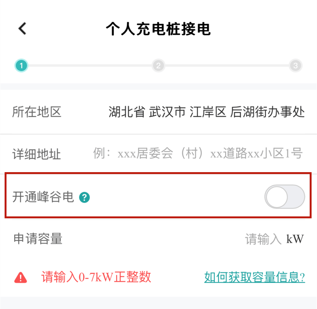 长江日报记者在“网上国网”APP中的“个人充电桩接电”申报界面看到,办理人可自主选择是否“开通峰谷电”。