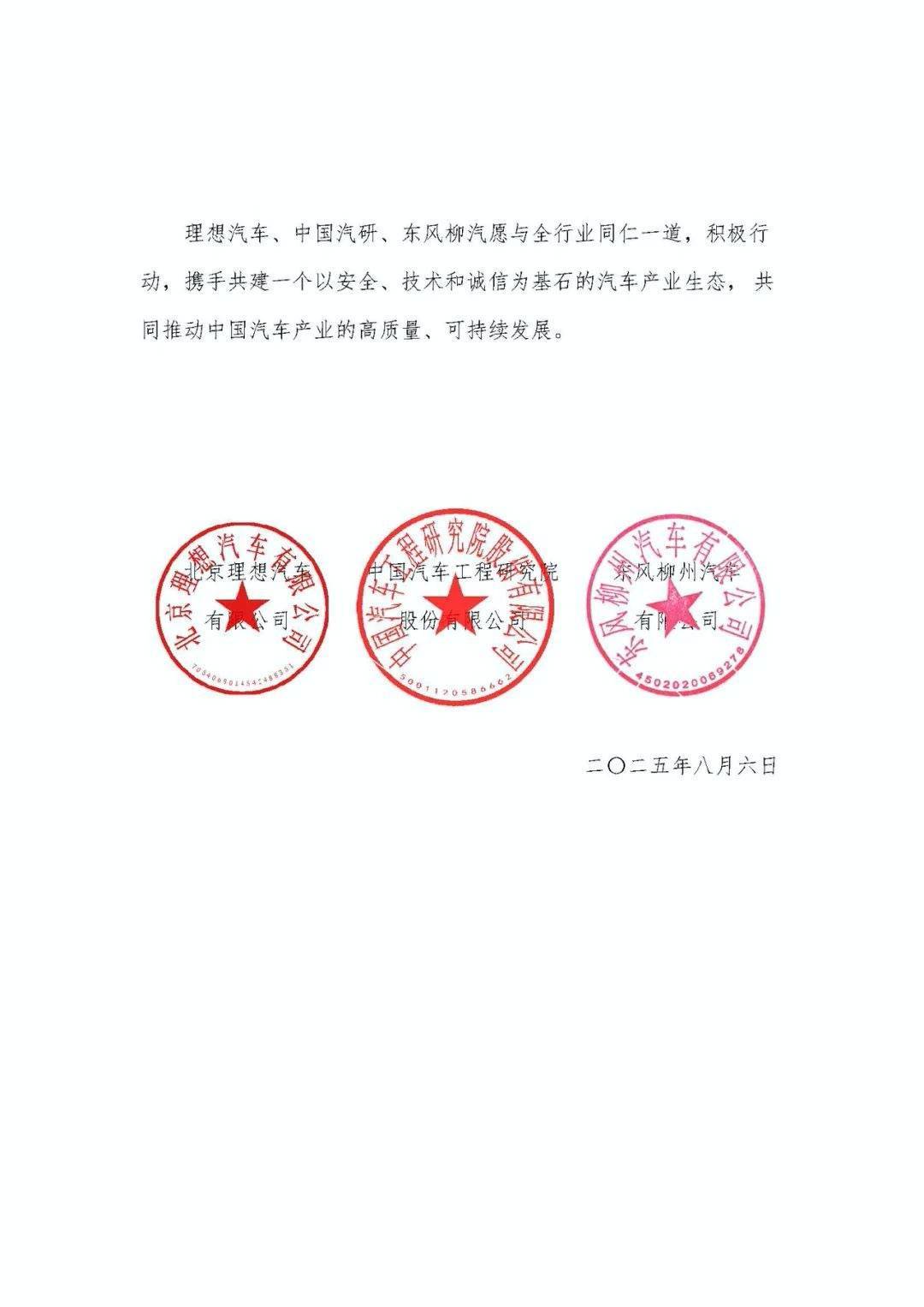近期,理想i8与第三方车辆(东风柳汽乘龙品牌)在碰撞测试中的内容传播引发社会广泛关注,并就汽车产品测试信息发布的规范性、标准执行的透明度以及企业品牌形象保护等议题引发了行业讨论。为澄清事实,消除误解,并共同维护良好的行业生态,理想汽车、中国汽研、东风柳汽三方在充分沟通基础上,就事件相关情况达成一致。