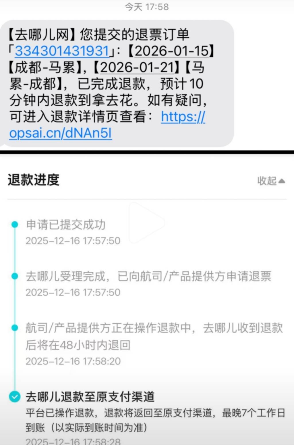 近日,有网友在社交平台上反映,自己12月8日在一售票平台购买了马尔代夫航空执飞的1月15日从成都直飞马尔代夫马累,以及1月21日从马累直飞成都的两张往返机票。12月12日,售票平台通知其“因航司技术错误,虽机票出票成功,但无法搭乘航班出行”。