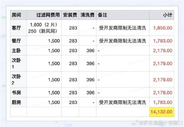 按照罗永浩的说法,其在上海租住的房屋面积约为两百多平米,共安装了7台大金空调内机。他在换季申请官方清洗服务时获悉,该品牌滤网设计寿命仅为一年且“不可清洗只能更换”,算上清洗费与耗材更换,每年的维护成本高达15000元左右。