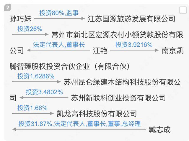 监管文件暂未披露“孙巧妹”的具体身份背景。企查查信息显示,与臧志成存在隐约关系的“孙巧妹”共有四位,分别在房地产、市政工程、建筑劳务等不同行业企业担任监事或股东职务,其关联路径均通过企业股权或投资网络与凯龙高科形成间接勾连。