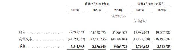 2022年至2024年及2025年前四月(下称“报告期”),均胜电子分别录得收入497.93亿元、557.28亿元、558.64亿元、197.09亿元,期间利润分别约为2.33亿元、12.40亿元、13.26亿元、4.91亿元。